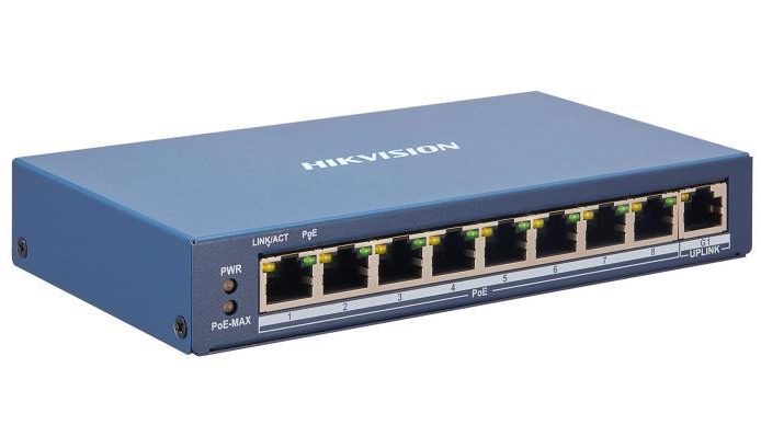 - 8 × 100 Mbps PoE RJ45 ports, 1 × gigabit network RJ45 port.