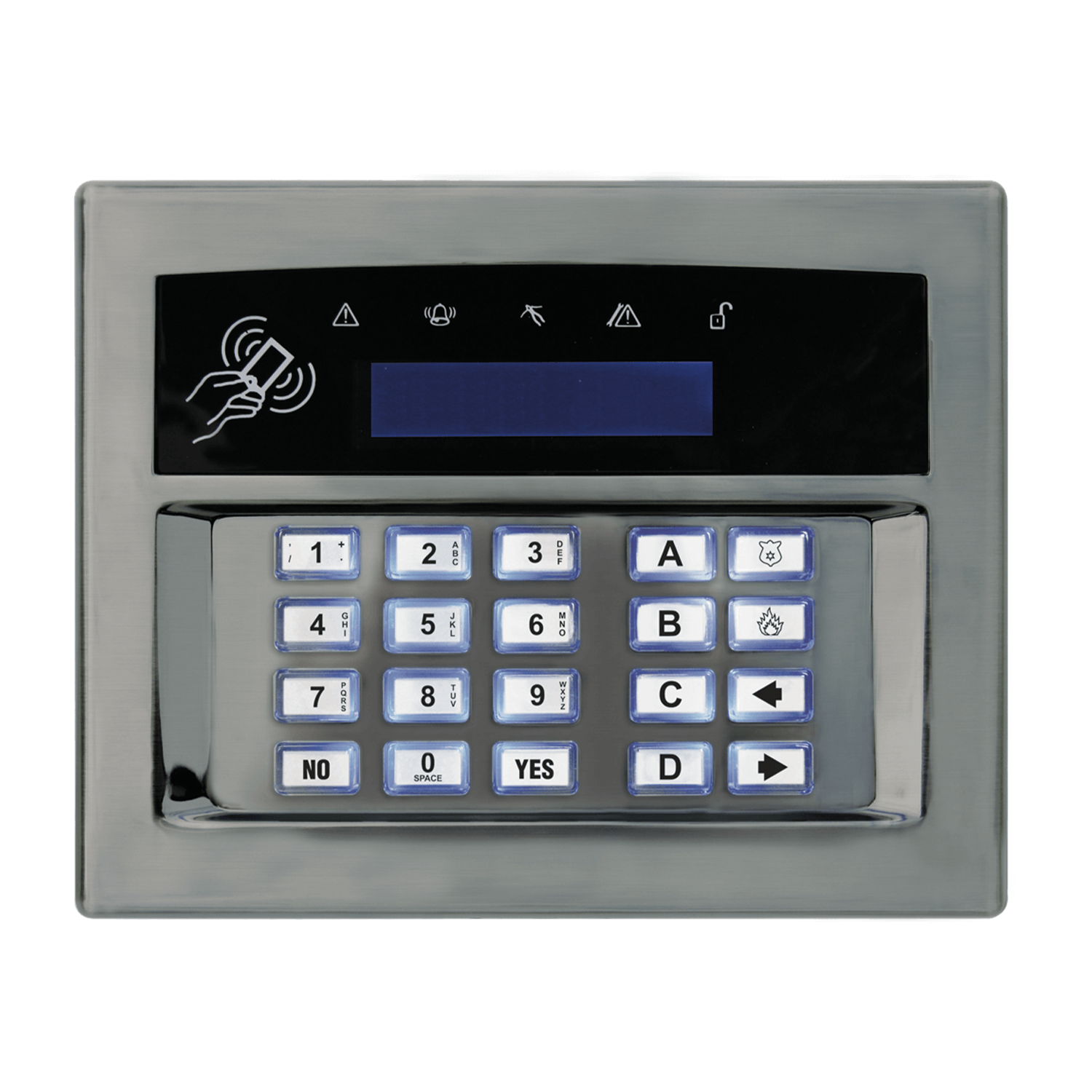 Our Surface and Flush Mount Keypads provide sleek styling options with interchangeable casings for unlimited customisation. The unpainted casing allows personalised colouring, and a flush mount back box option provides a tailored finish. Compatible with EURO and Enforcer ranges, the keypads feature LCD backlighting, illuminated keys, and proximity capability.